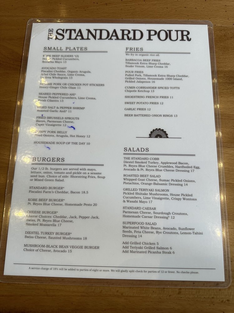 Introducing the menu at The Standard Pour, a delightful culinary destination located in the heart of Sonora, CA, where comfort meets flavor in a casual atmosphere. This women-owned establishment specializes in a diverse range of dishes, from mouthwatering burgers to fresh salads and indulgent sandwiches. Each menu item is crafted with care, featuring locally sourced ingredients that shine in customer favorites like the Barbacoa fries and loaded tater tots.